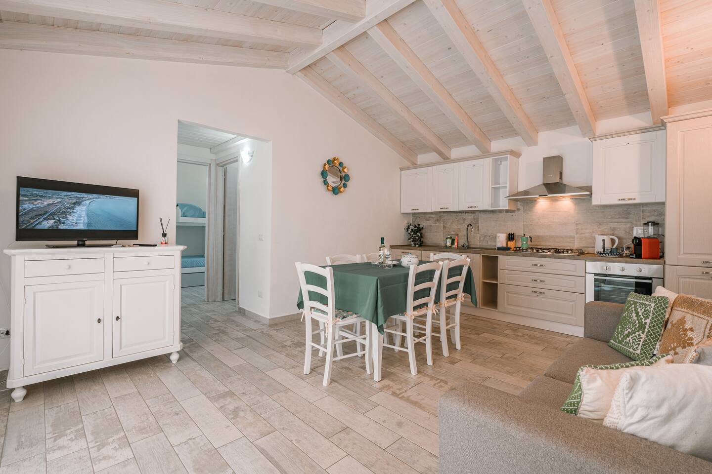 Escape to our newly built villa in La Caletta, 500m from the sparkling sea. This stylish retreat offers 2 bedrooms, a fully equipped kitchen with a cozy sofa bed, and a sleek bathroom. Enjoy the convenience of a nearby supermarket and embrace a relaxing stay in this modern oasis. Let this serene atmosphere create cherished memories during your vacation. Step outside onto the private terrace and enjoy the Mediterranean sunshine.