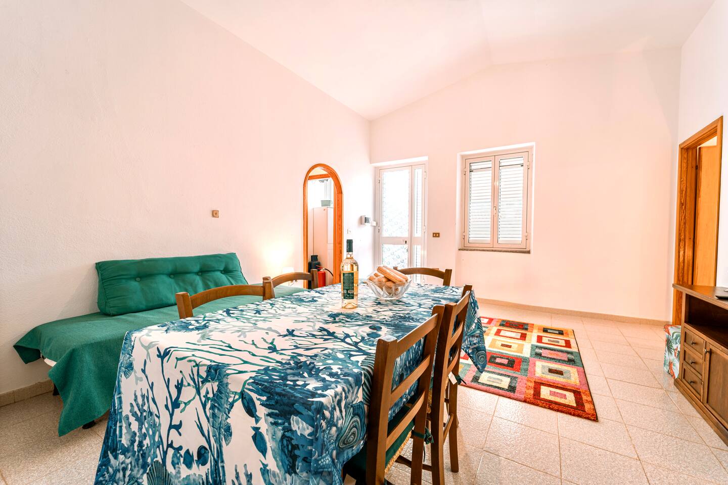 This charming apartment allows you to enjoy the wonderful sea of Sardinia, surrounded by the colorful vibrancy of the Santa Lucia village. Ideal for a family or a group of friends, the house accommodates up to 5 people and features air conditioning, an outdoor shower, and a spacious outdoor area. Our staff is always ready to assist you with any needs you may have. This charming apartment allows you to enjoy the wonderful sea of Sardinia, surrounded by the colorful vibrancy of the Santa Lucia.